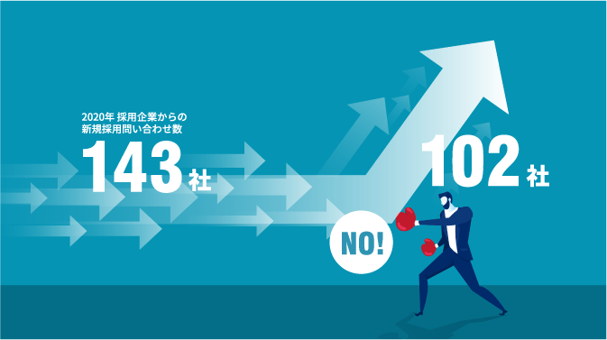 他社のような、「毎月○人!」などと言った成約目標を軸に活動は行いません。我々が個別に新しい働き方の提案をしていくことで、企業の必要とするポジションとのマッチングを図ります。