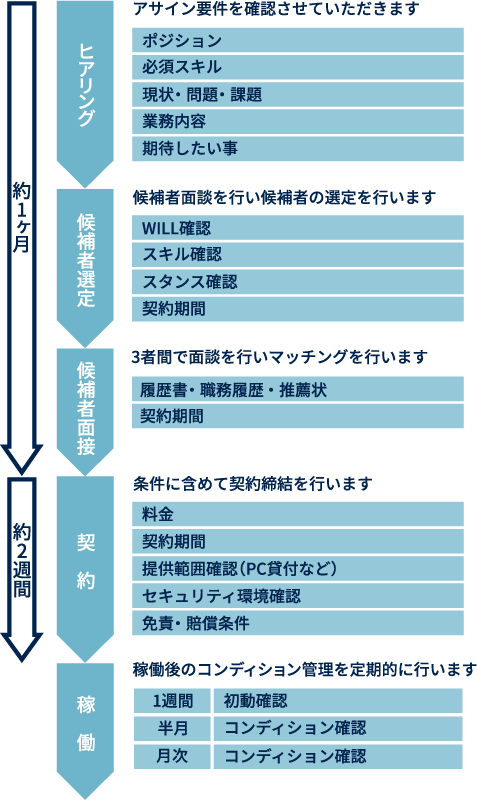 当社は業務遂行のキーとなるこのポジションを中心に、優秀な人材をアサインさせていただきます。